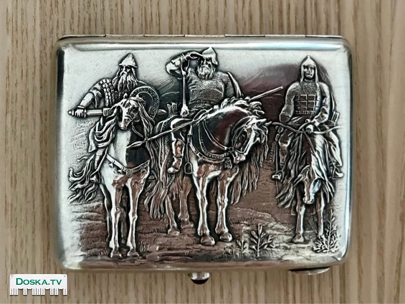 Антикварный серебряный массивный портсигар "Три богатыря" 1930-е годы СССР вес 200гр Московская ювелирная фабрика 875 проба размер 11Х9см изнутри позолота помещается пачка любых сигарет клейма присутствуют в идеальном коллекционном состоянии прошу 3000 шек петах-тиква самовывоз все вопросы по телефону