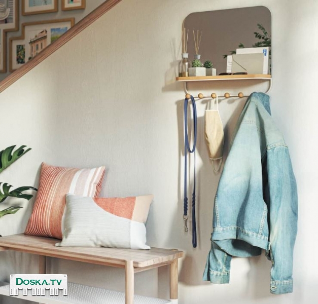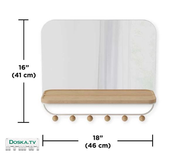 Зеркало, которое придаст вашему дому декоративный и современный вид. В комплекте с зеркалом идет деревянная полка, на которой можно разместить телефон, кошелек, ключи, а также небольшие цветочные горшки и шесть крючков для пальто и сумок. Благодаря функциональному хранению вы сможете легко и просто хранить свои вещи, чтобы не покидать дом. Современное сочетание дерева и металла делает эту полку декоративным решением для хранения, которое будет отлично смотреться в любом месте вашего дома или офиса. Выдерживает до 16 кг.
